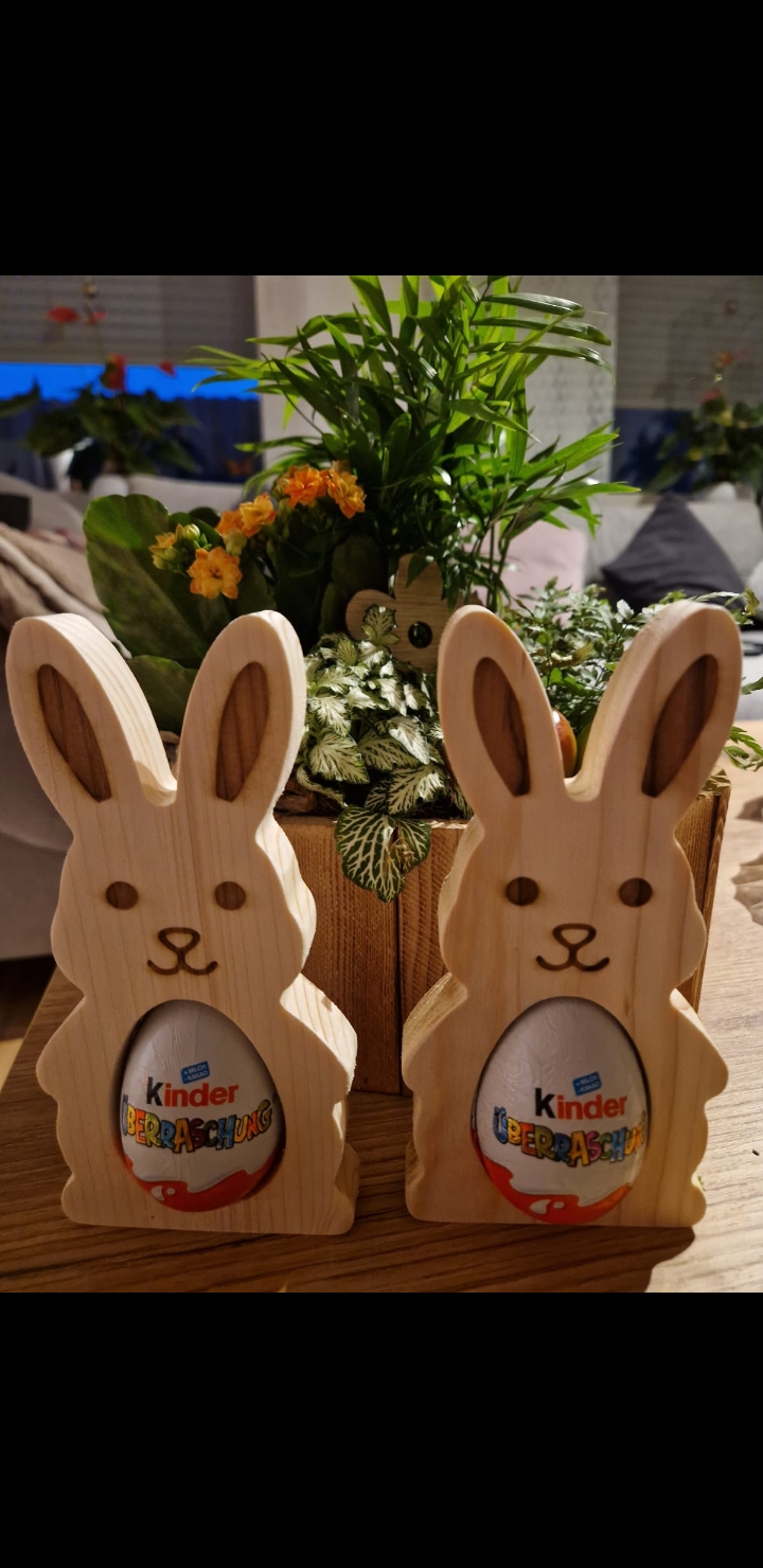 Handgefertigter Osterhase aus Massivholz – Geschenk für Überraschungsei Dieser liebevoll gestaltete Osterhase aus massivem Holz ist eine schöne kleine Geschenkidee zu Ostern. Der Hase wurde von mir in Handarbeit aus stabilem 18 mm Massivholz gefertigt und bietet Platz für ein Überraschungsei. Durch die Aussparung im Bauch kann ein Überraschungsei dekorativ eingesetzt und verschenkt werden. Damit…